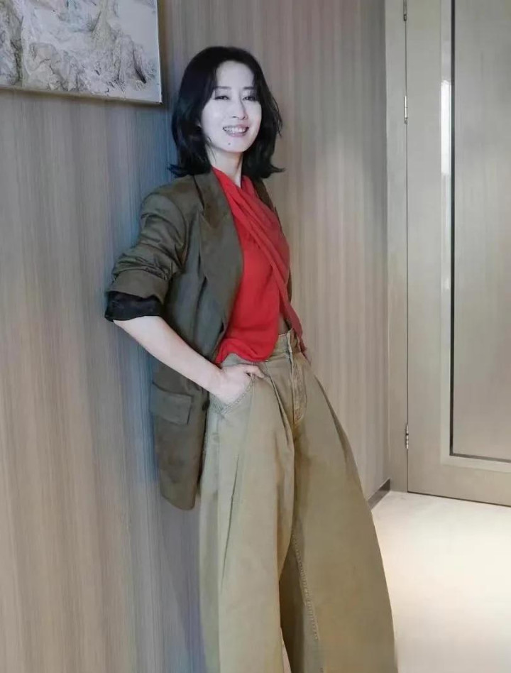 线上炒股配资公司刘敏涛真是70后女人的穿搭标杆! 西装+阔腿牛仔裤, 时髦又高级!