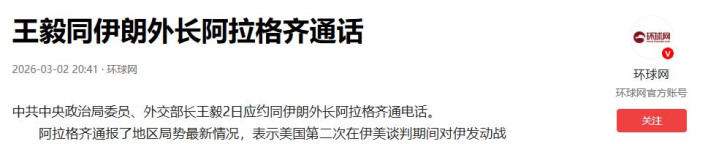3月2日,伊朗外长阿拉格齐主动拨通了中国外交部长王毅的电话。这通跨越亚欧大陆的电话,似乎是德黑兰在生死存亡之际发出的战略求救信号。