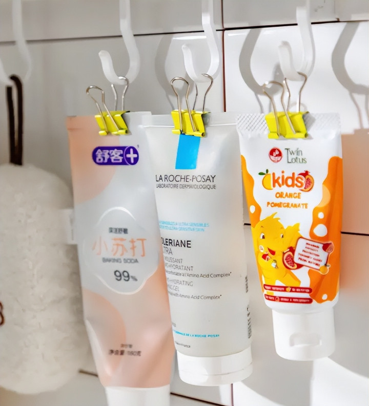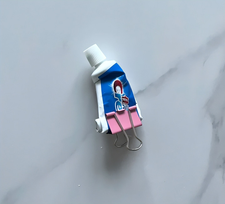 牙膏用完了,也可以用燕尾夹夹起来,这样牙膏更好挤出来。