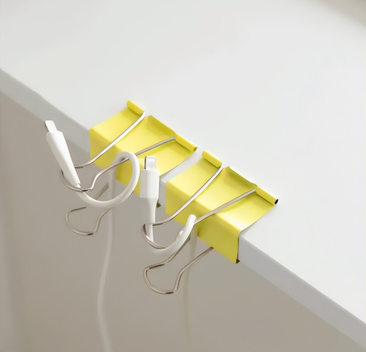 其实只需要一个燕尾夹,把充电器穿过燕尾夹,就可以轻轻松松收纳好。