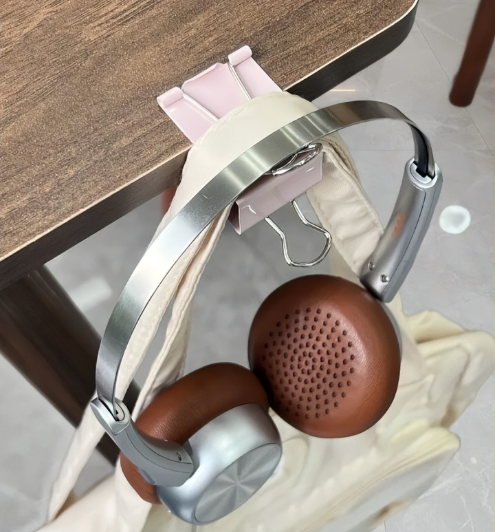 把燕尾夹夹好了之后,平时戴的耳机、背着的包,都可以挂在燕尾夹上。