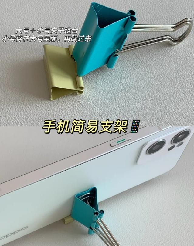 家里要是有燕尾夹的话,燕尾夹简单改造一下,还可以用来改造成手机支架。