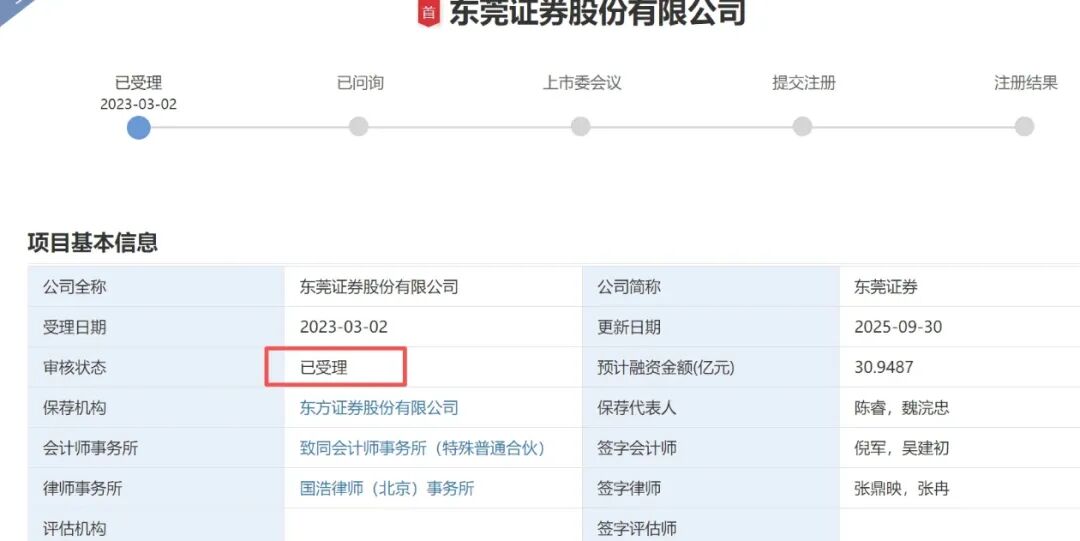 如今,同批次或更晚申报的渤海证券、华龙证券、财信证券、开源证券等均已进入“已问询”阶段,推进明显提速。相比之下,东莞证券两年半以来再无实质性进展,上市前景愈发渺茫。
