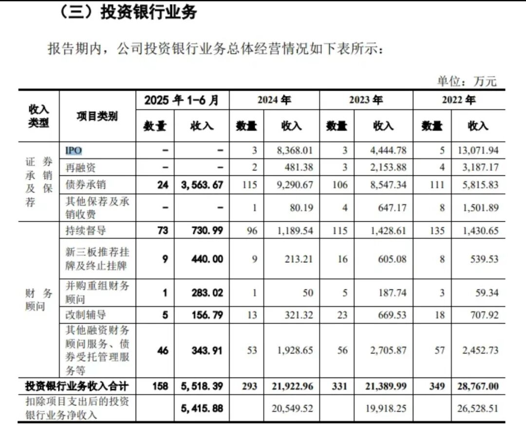 尤为刺眼的是,今年上半年公司IPO项目数量为零,投行业务陷入“项目荒”。2024年全年投行收入为2.19亿元,而2025年上半年仅录得0.55亿元,增长乏力可见一斑。