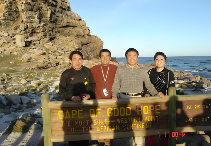 于彦忠(左二)与于连胜(右二)访问南非,在好望角(2004年6月)