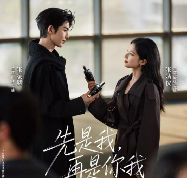 兰蔻上个月在情人节发布“先是你,再是你我”的最新宣传片 ,短片中,张凌赫身穿全黑西装,手提公事包演绎都会精英;张婧仪则身穿深棕色风衣外套饰演文艺作家,两人在飞机上正好坐隔壁相遇,最后两人再次在人群中重逢,海报中两人深情对视、眼神暗流涌动,短短宣传片就让网友嗑翻,大赞兰蔻根本是最强 CP 粉头,跪求两人合作电视剧。